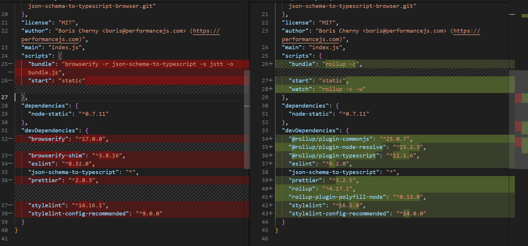 也就是5天前…2024年5月12日,作者移除了demo网站项目的browserify打包,并把整个项目添加了打包器rollup、也就是说从仅打包json-schema-to-typescript库变成了打包整个项目。