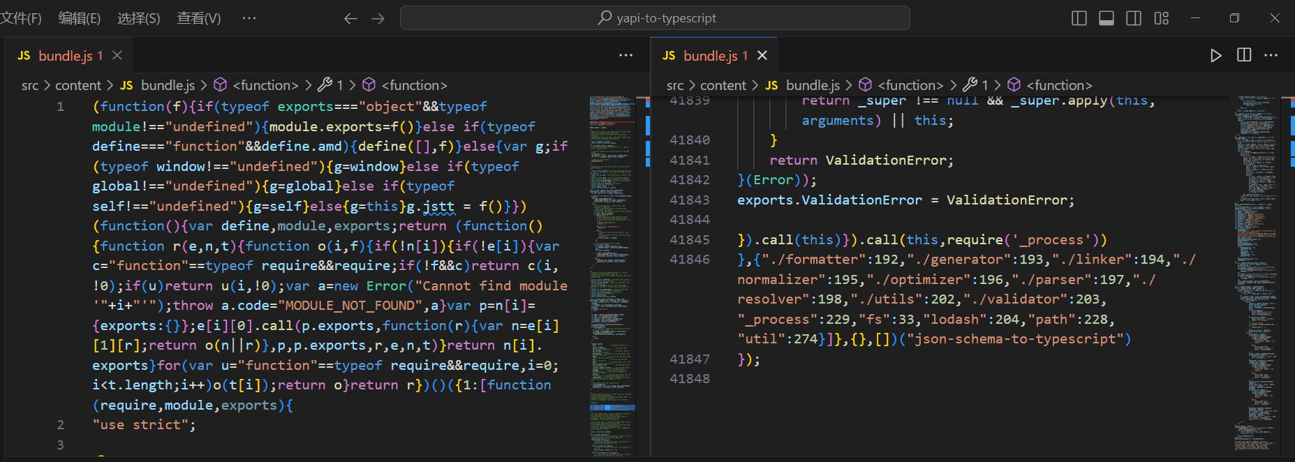 相信浏览器插件的作者,就是这个时候找到了json-schema-to-typescript,并从它的仓库里拷贝了bundle.js。