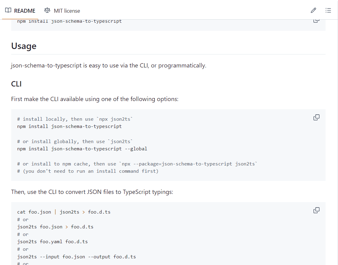 不想动态import,那就找找源库吧。之前看过bundle.js里的代码,发现最后一行里写了库的名字:“json-schema-to-typescript”(后文简称jstt),于是去github上搜,果然搜到了:https://github.com/bcherny/json-schema-to-typescript。(虽然很多类似的库,但是通过对比代码里的引用路径确定了就是它)